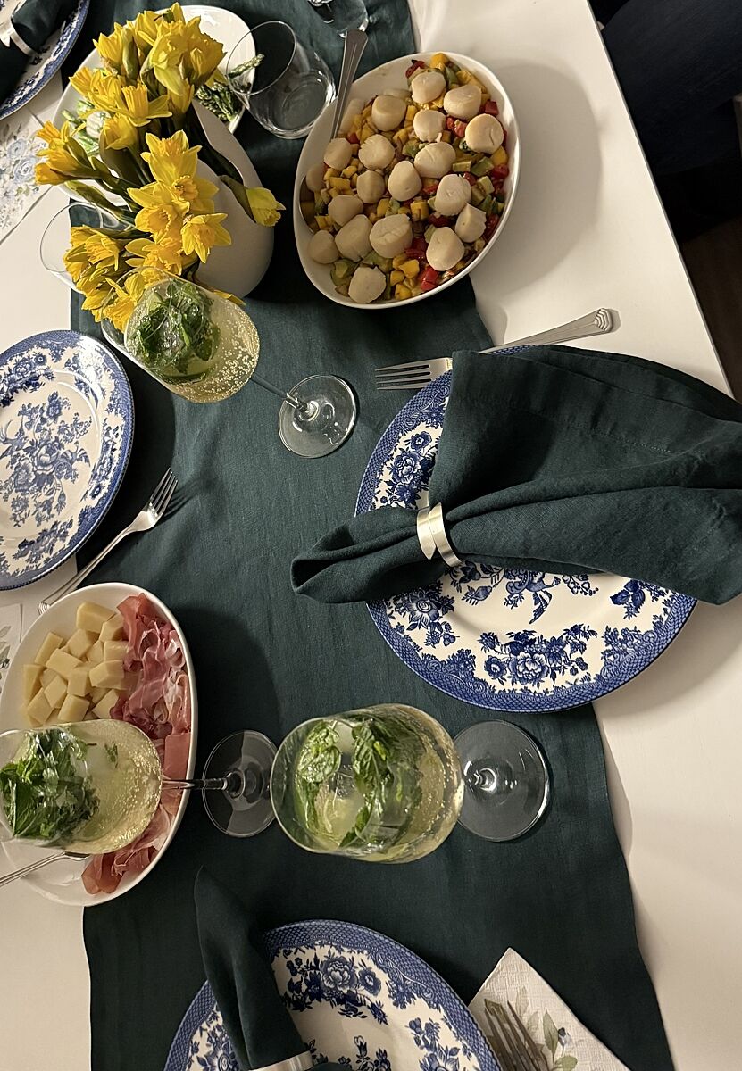 Были большие креветки, французский багет и белое вино, ездили за ними специально в близлежащий Карфур во Францию))