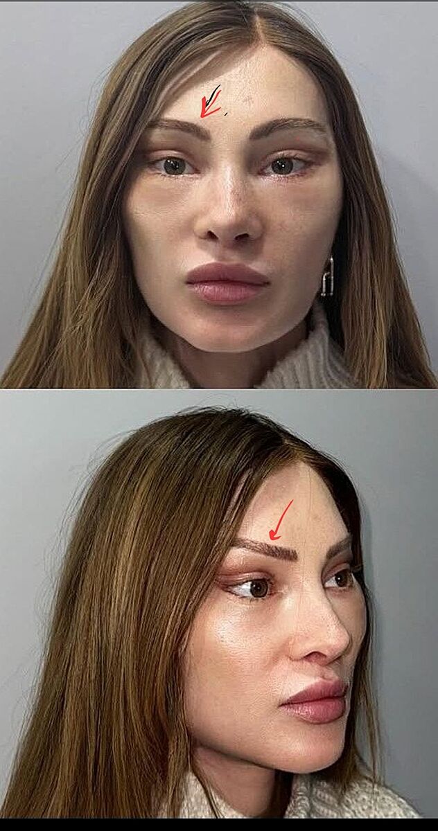Мне кажется, это разные женщины. Очень смущает разница в бровях и подбородке. Да и форма губ, сверху округлая, снизу более ровная.