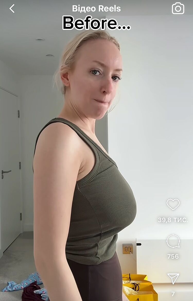 Во-первых, девушка в облегающей майке и похоже без лифчика, потому что зафотошоплены соски на фото. Без бюстгальтера естественно грудь будет выглядеть обвисшей, но стоит одеть нормальное белье и другую майку и вид был бы кардинально другим. Если эта девушка решила отрезать грудь вместо подбора лифчика, то у неё что-то с головой