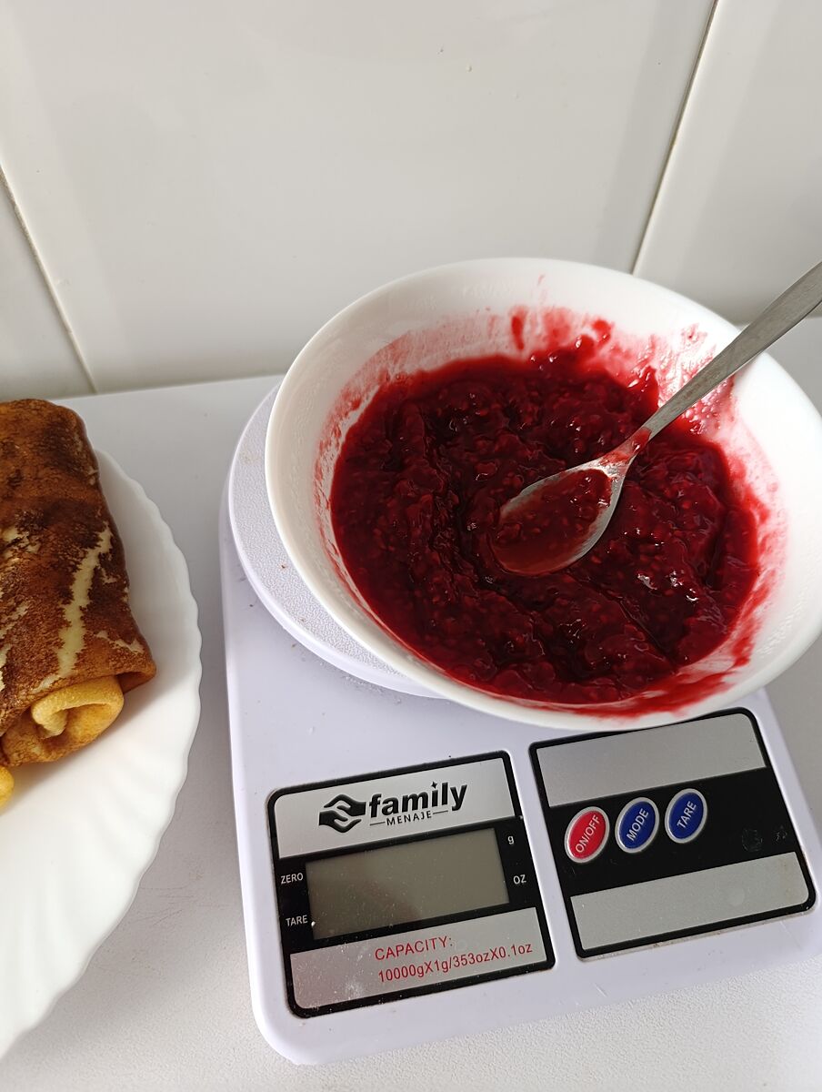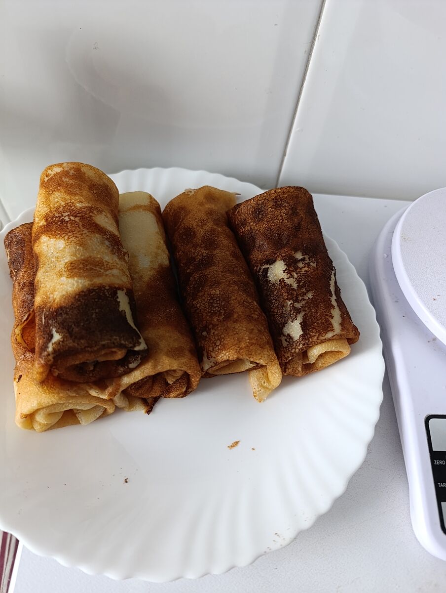 Блины с творогом. Планировала ещё добавить малиновый конфи, но мне не понравилось, что косточки ощущаются.