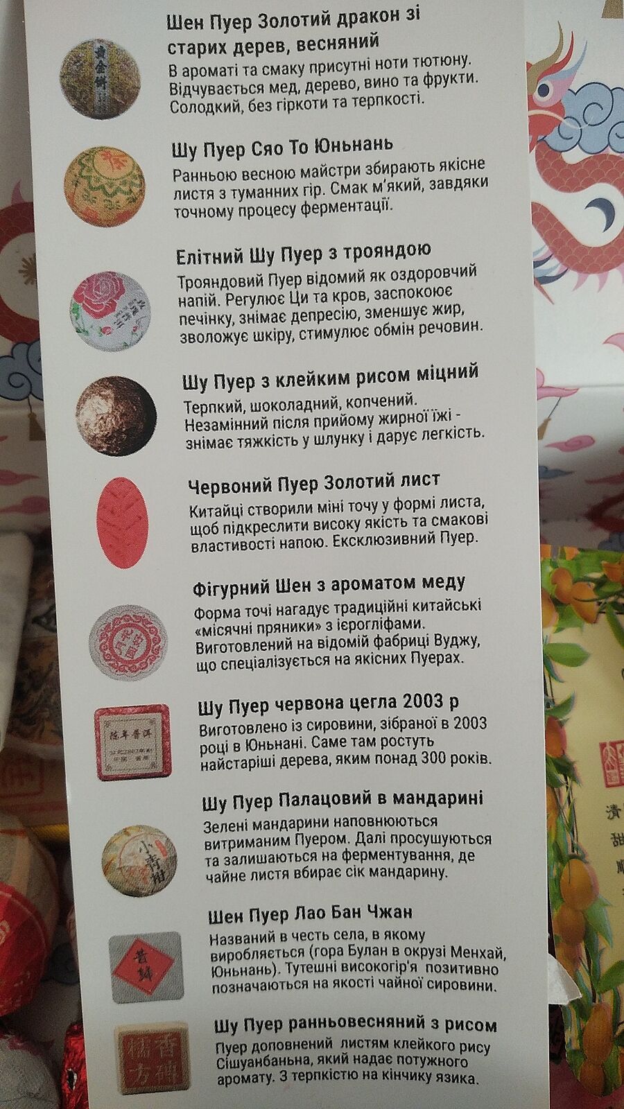 Чай как чай, насыщенный, каких то ярких нот я не ощутила. Но может в других брикетах и будет видно, как в описании.