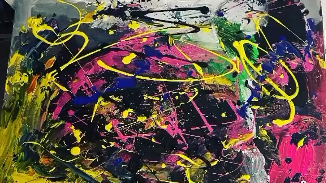 я такое видела давно еще лет 10 назад , к нам приезжали на конференцию по обмену опытом такого искусства из евро стран с Германии и с Америки ’свободные художники’ и еще не помню откуда , я ходила на выставку в худ музей ,и там была эта платная конференция с переводчиком - даже обмен опытом как рисовать это , лист бумаги или ткани на полу и с высоты чел роста туда льется жидкость разноцветная , потом это все высохнет и картина готова еще, ньюансы добавляют ручную работу например сбоку лицо или пол лица , их кстати продают эти шедевры и не дешево или мазня кистью а потом это все покрывают покрытием , это модно, красивее чем картина Крик или Черный квадрат