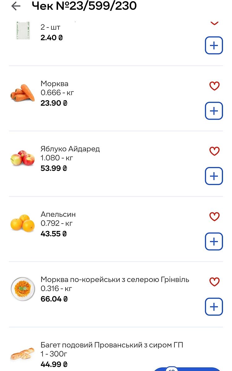 Список всегда плюс минус одинаковый: овощи, фрукты, листья салата, мясо/рыба, молочка.