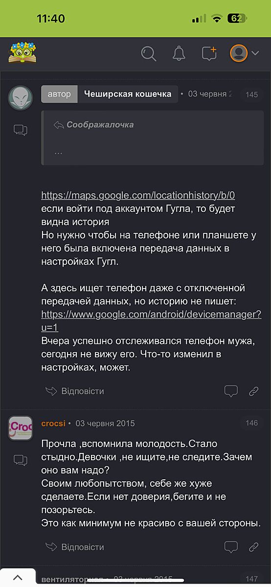 Мені було зручно з фемілі лінк, коли в сина був андроїд (у мене айфон). Там навіть заряд батареї видно. Зараз син перейшов теж на айфон - користуюся локатором