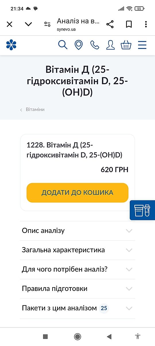 В сінево 620 грн аналіз на вітамін Д, капець((
