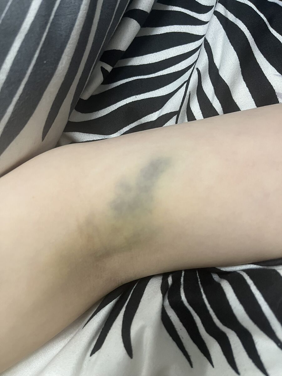 Все нормально. По фото нічого страшного. Синець проходить свій етап, «цвіте»
