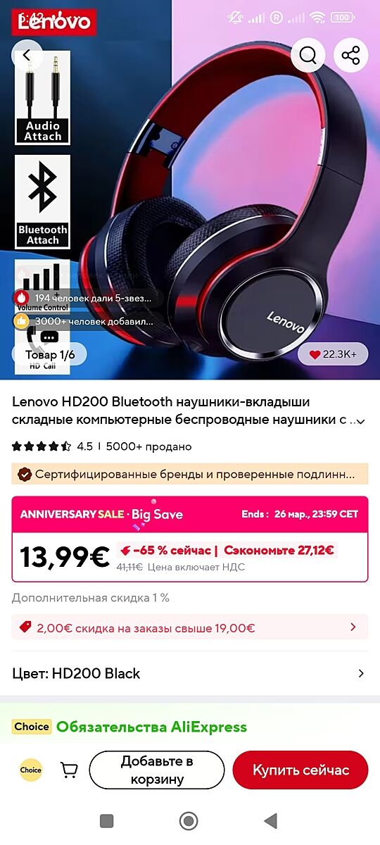 Я наушники под Леново заказала со скидкой -65.