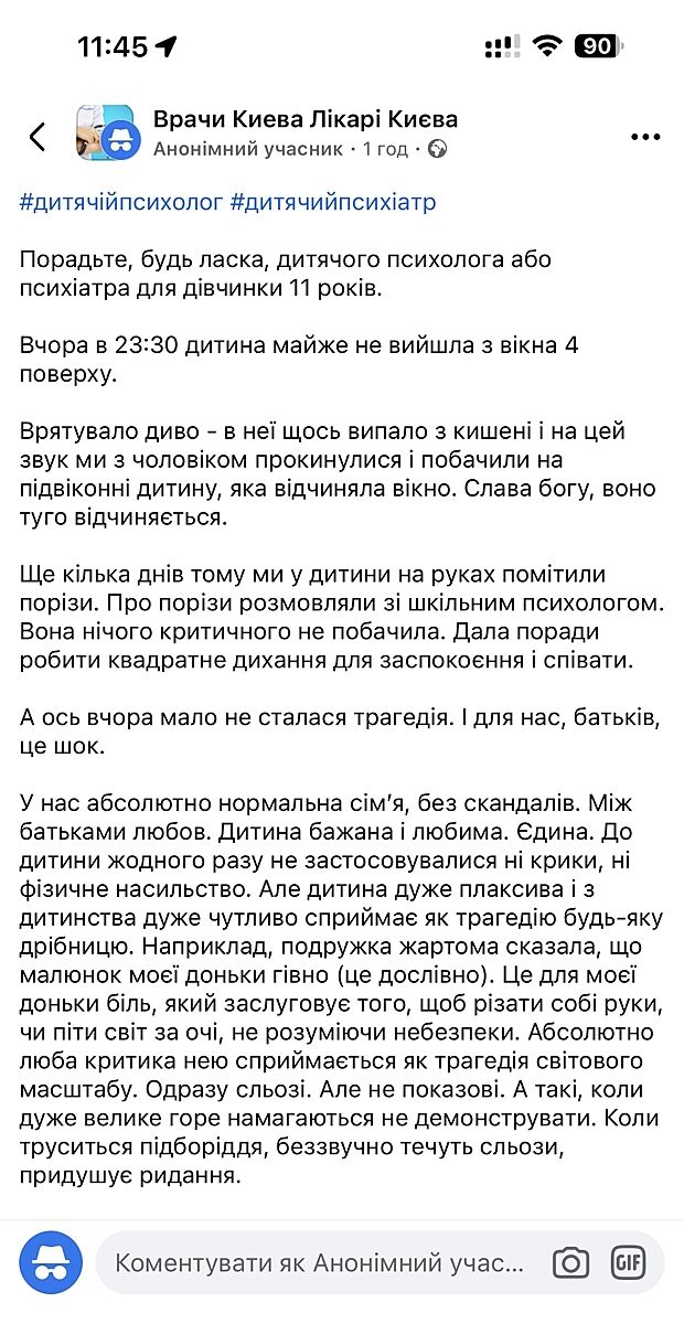 Про порезы с нею говорила детский психолог! Или вы думаете, что я по приколу ищу именно психиатра?