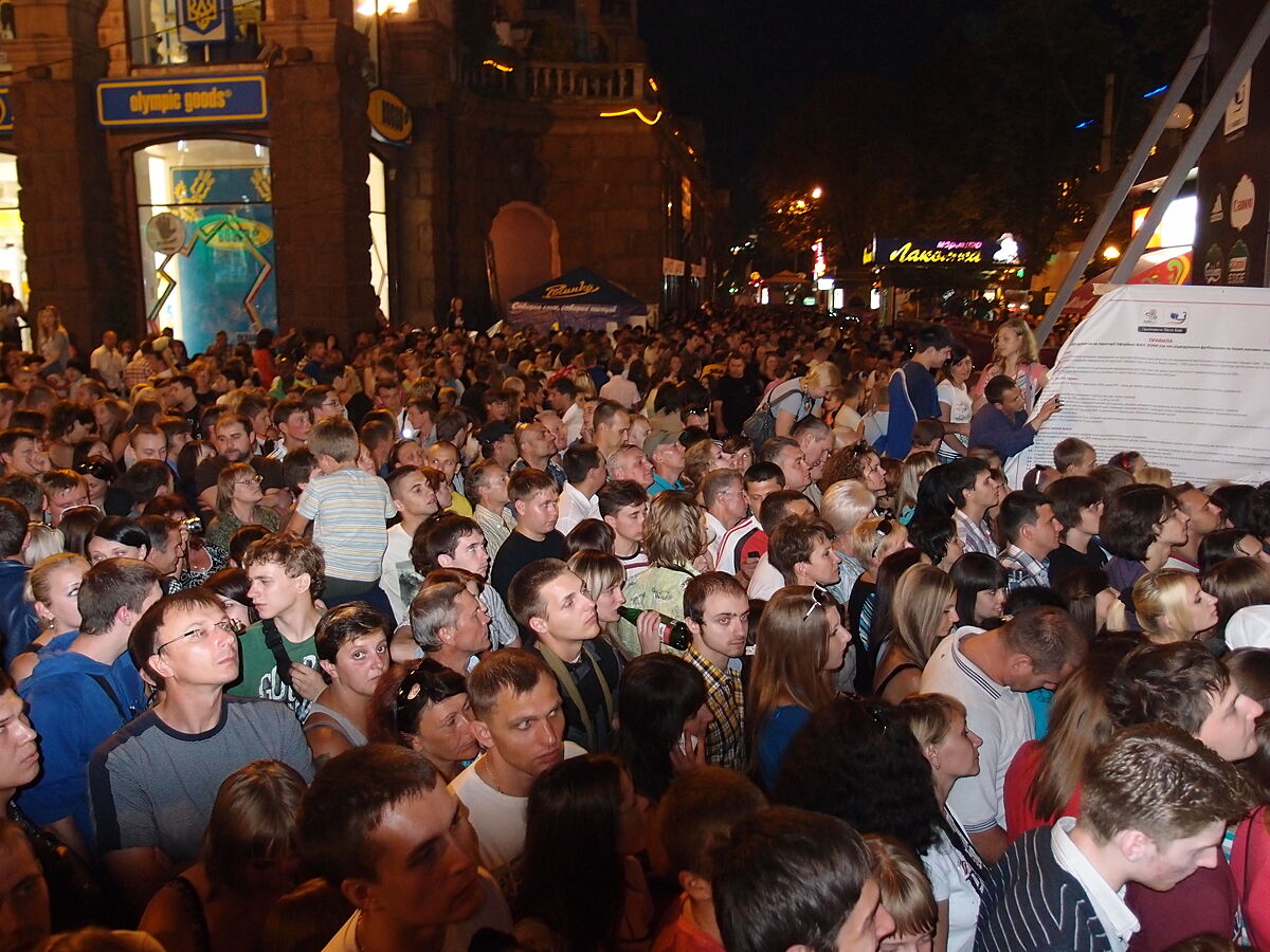Как вам такие времена?) Весь Крещатик от Европейской площади до Бессарабского рынка был плотно набит людьми