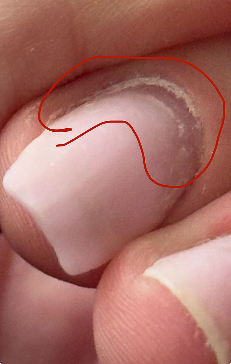 Глубокий пропил. Фрезой ноготь разделился пополам.