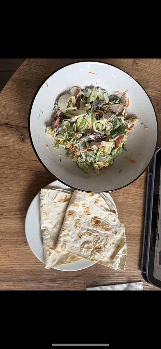 Лаваш с сыром и грибами, салат овощной со сметаной