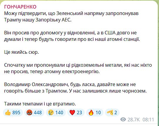 Вчора речниця Білого дому Керолайн Левітт заявила, що Трамп вважає, що якщо США володітимуть енергооб´єктами України, то це буде ’найкращим засобом захисту інфраструктури’.