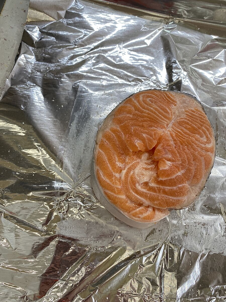 Рыбу сейчас запеку, салат из молодой капусты и картошка с укропом