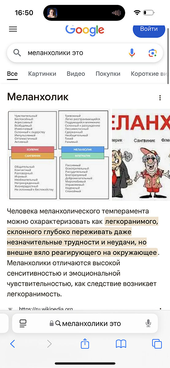Згадала картинку з шкільного підручника, там де один чоловік сів на капелюх іншого. Меланхолік заплакав. Така елементарна дрібна проблема і зразу в сльози