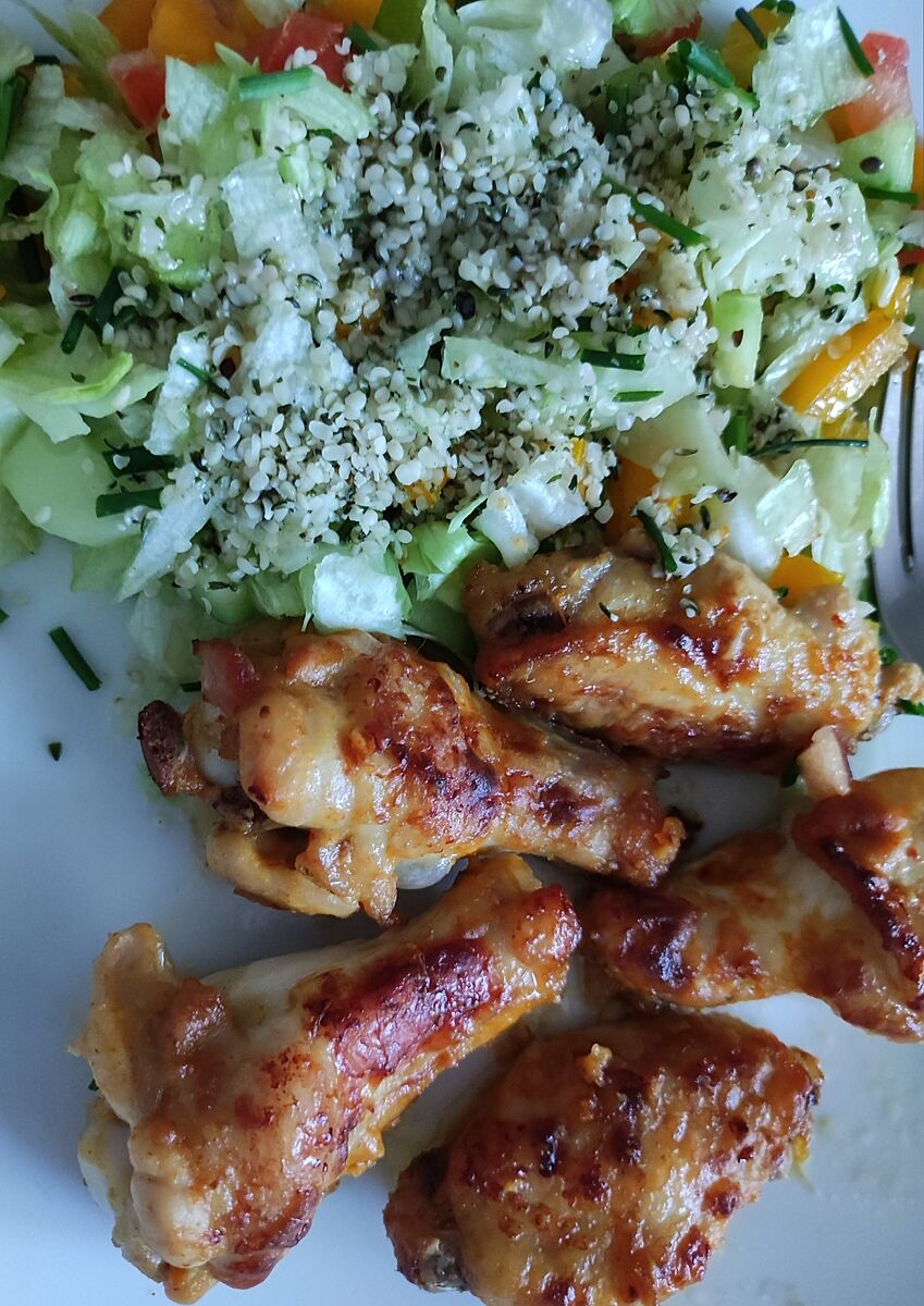 У меня были бризоли в вафлях и пюре, салат с черемши .