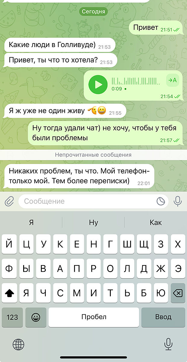В голосовом было, просто хотела спросить как дела, давно о тебе не слышала. Все. Жить не простилась