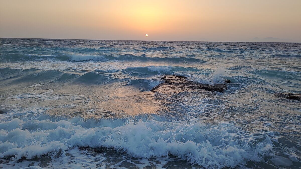 Я була десь 25 км від Геракліона. Вода в сумі тепла, але вітер дуже сильний і пронизливий. І сильні хвилі.