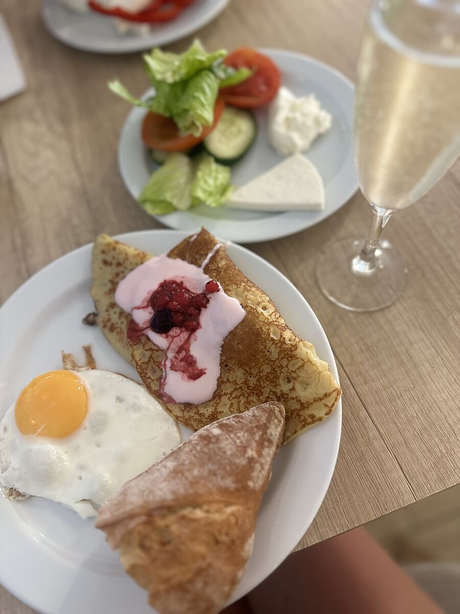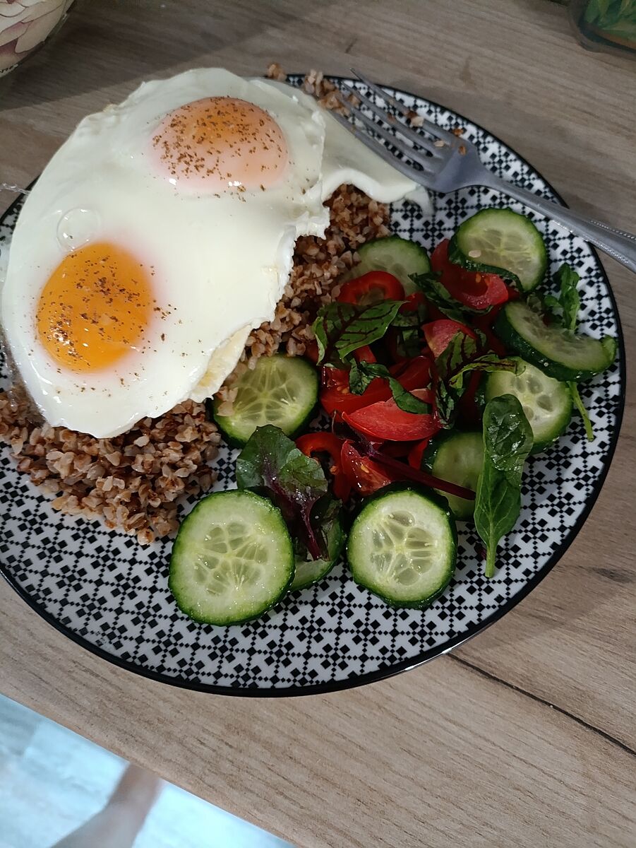 Я зʼїла 2 маленькі пиріжки з пекарні, тому особливо не пораджу. А ні, забула, роблю оладки, це дитині сніданок вихідного дня