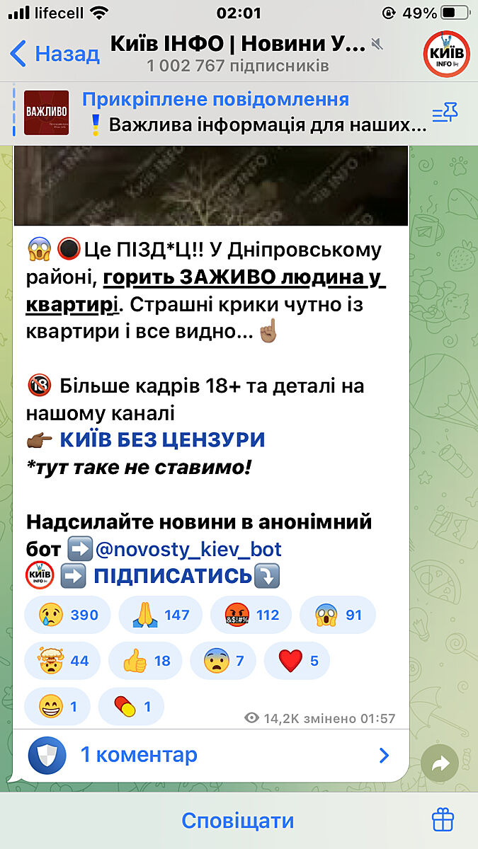 В крюківщині, коли від шахеду загинула сімейна пара, то сусіди чули ,як сильно кричала жінка. Кому як повезе, деякі горять заживо