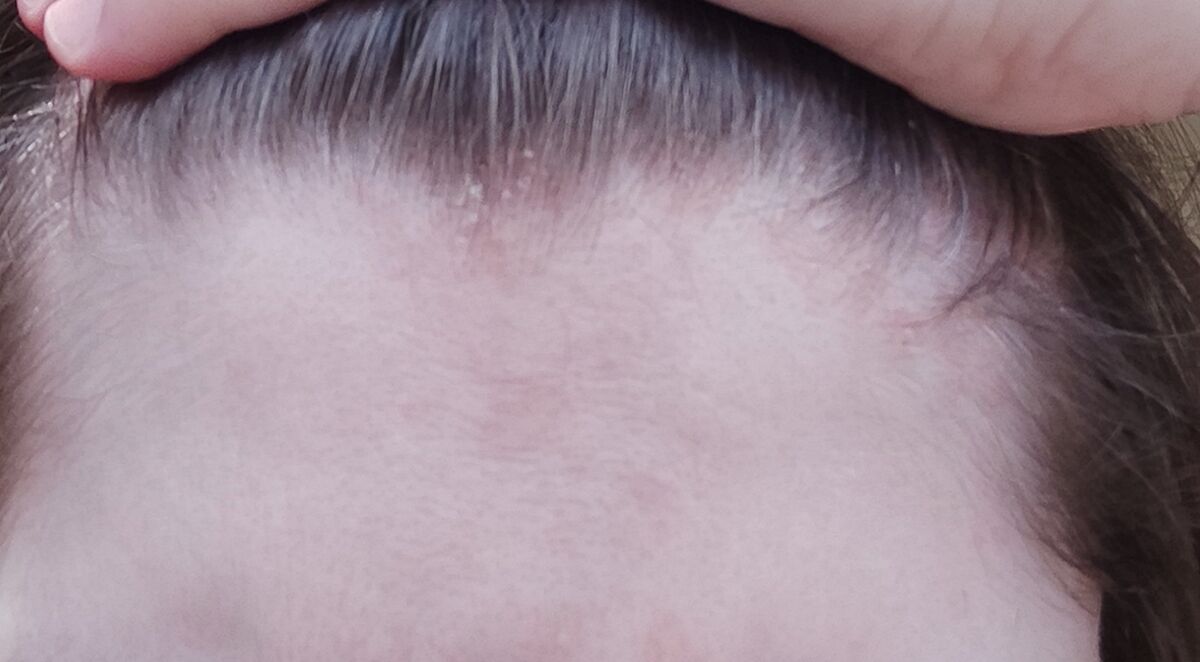 Себорея. Приберіть ковбасу,сир,сосиски,цукерки і тд. Купіть шампунь деркос від віші,намилити шкіру голови і промяти масажером,тоді змити.