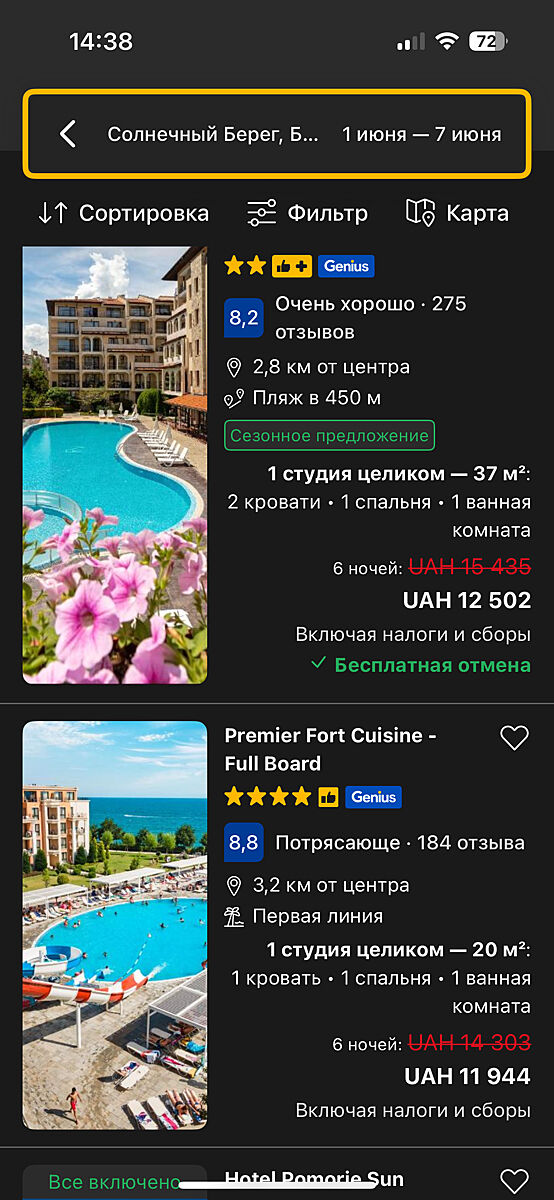 Вот для примера, несколько вариантов отелей в Болгарии, в сравнении цен на букингу и через наш агрегатор.