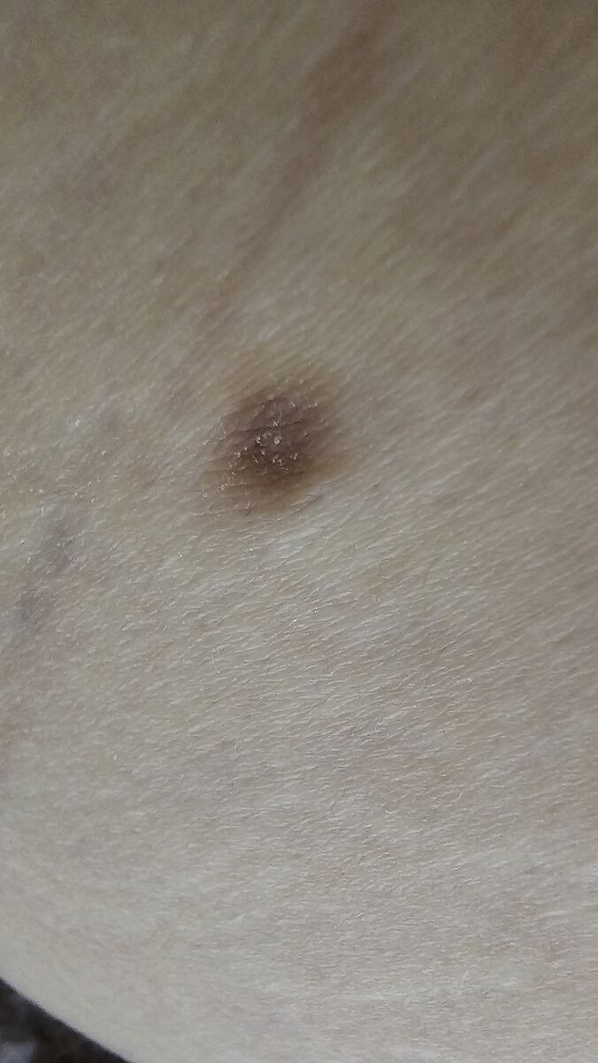 У мене була малесенька, але чесалась періодично. Видаляли в онко, мала вже атипічні клітини. Вирізали глибоко, шви накладали.