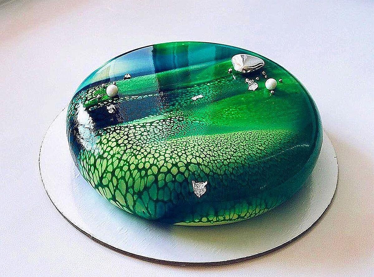 Ні я про іншу глазур кажу . Я про дзеркальну яка ллється на мусовий десерт заморожений . Там не проста технологія я багато разів робила але не можу зрозуміти як декілька кольорів одночасно ллють одного кольору , бо там щоб колір добавити треба взбити і пропустили через сито щоб бульбашок не було. А потім еще гарячий леопард наливати потрібної температури щоб від розійшовся добре.