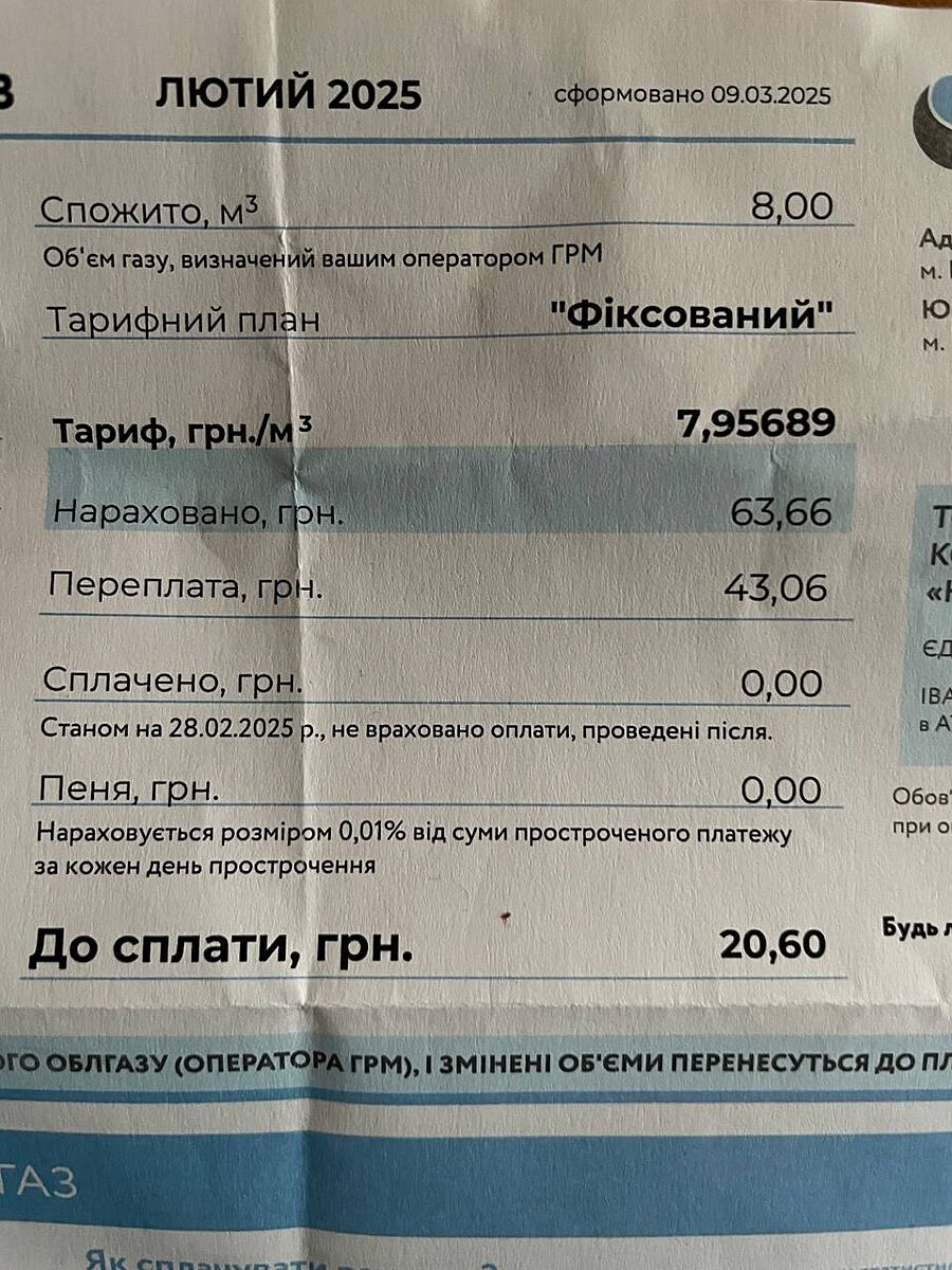 платежка за газ, Киев.
