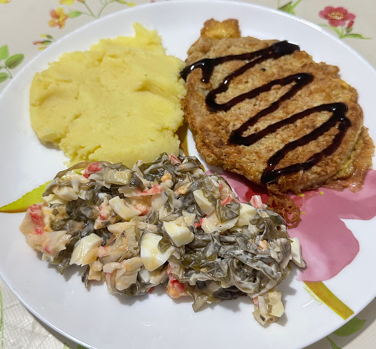 У меня сегодня на поздний завтрак был стейк и салат из буряка