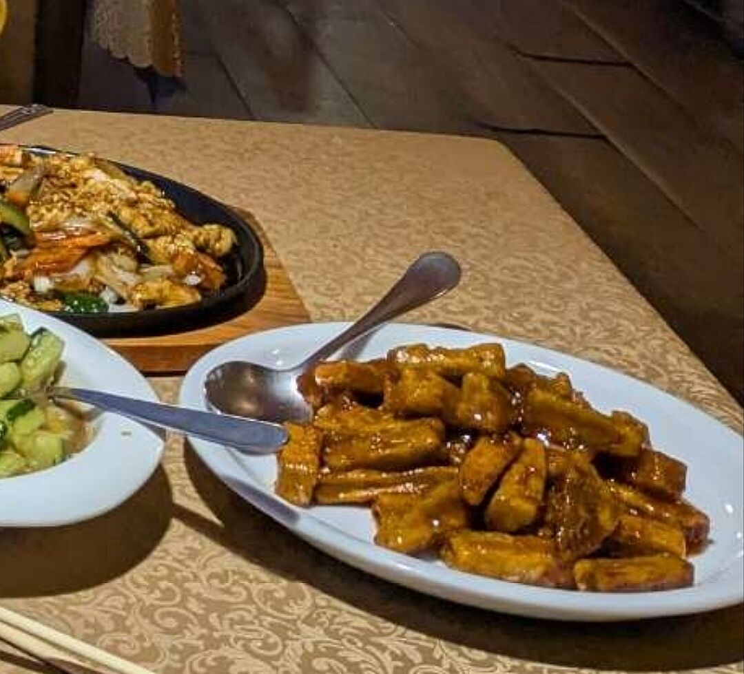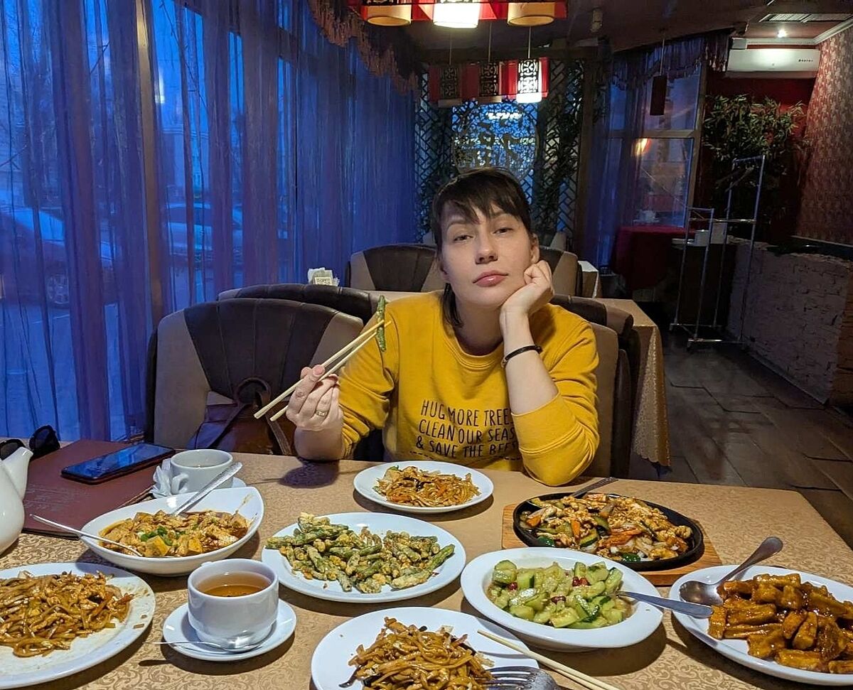 Китайка это зло. Домой только половина тарелки баклажанов приехала. И слава богу, что мне ума хватает каждый раз не заказывать десерт😆