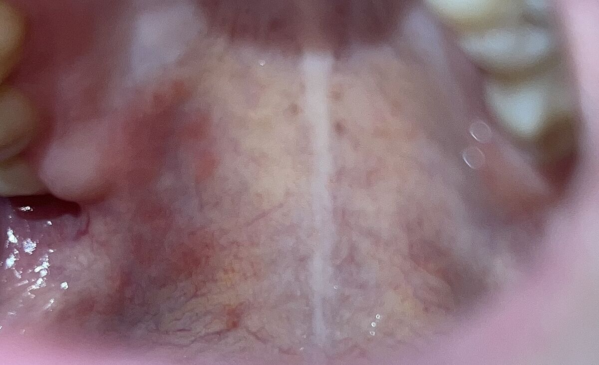 Ближе к вечеру появились пятнышка на нёбе, не болят, не чешутся, но создают дискомфорт.