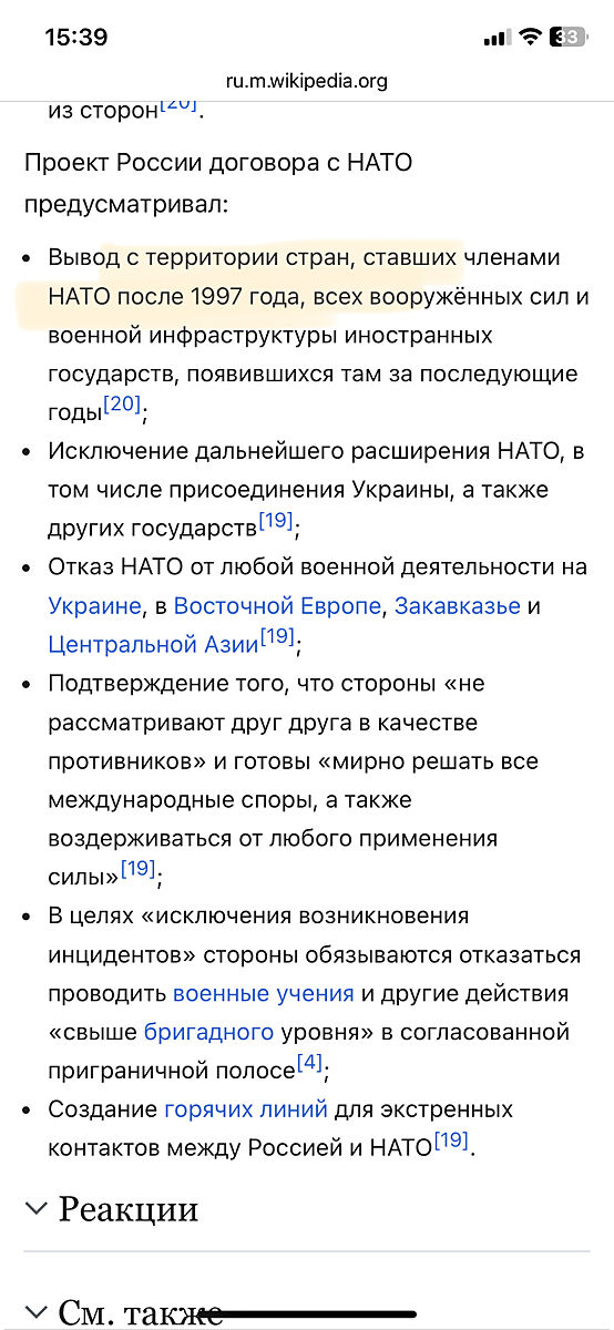 І ультіматум пуйла , а саме - повернення НАТО до конфігурації 1997 року