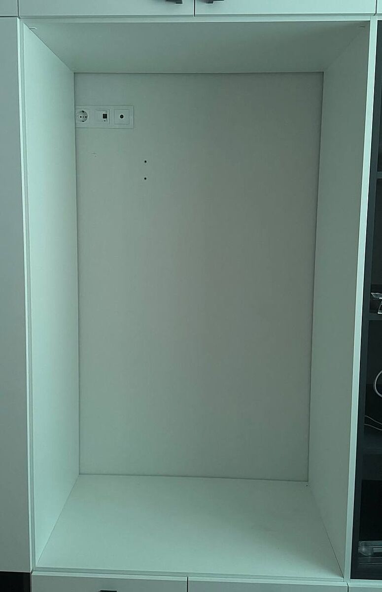 Есть шкаф по всей стене комнаты, с одной стороны полки закрытые и с другой, посередине такая ниша, раньше был телевизор у других владельцев