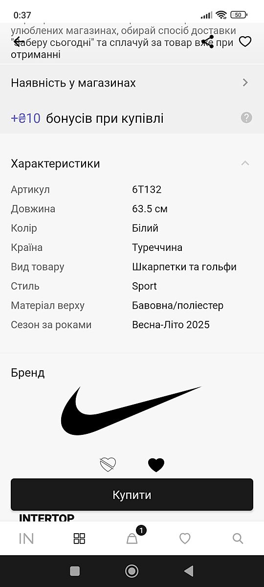 Носки Nike Интертоп 199грн