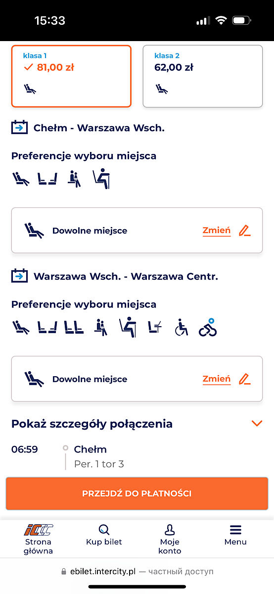 Ви на сайті intercity.pl або koleo.pl заходили? Не через додаток, щоб подивитися схему місць на потрібний Вам час?