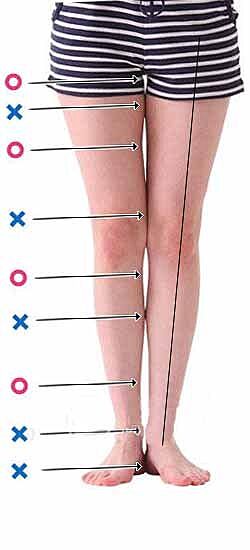 У неї х-подібні ноги. Тут вона на носочках, якщо стане на повну стопу, то або взагалі не зможе пʼяти звести до купи, або не буде жодного просвіту, в кращому випадку