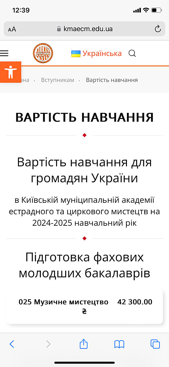 • 024 Хореографія (денна форма): 33 300 грн на рік.