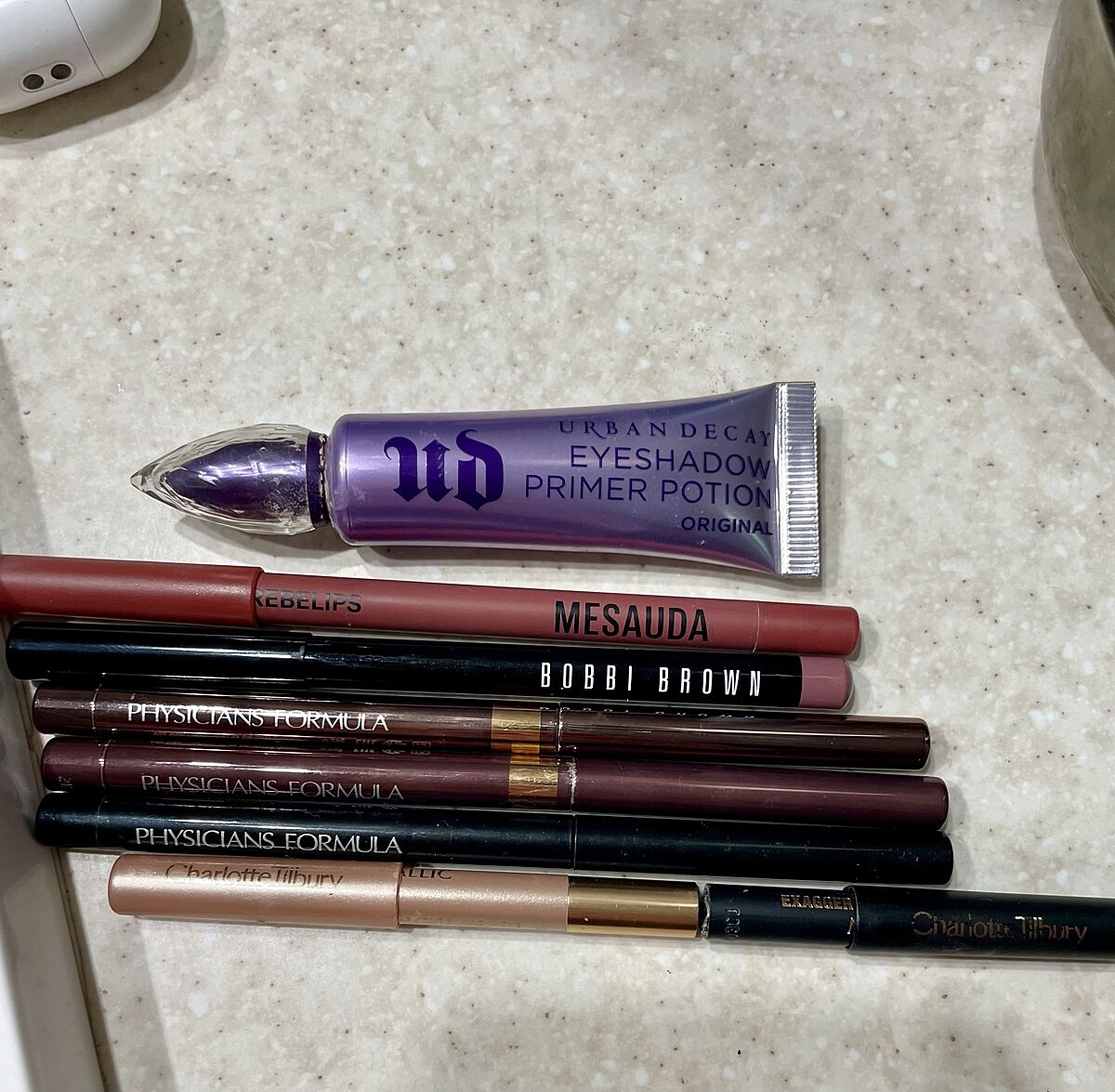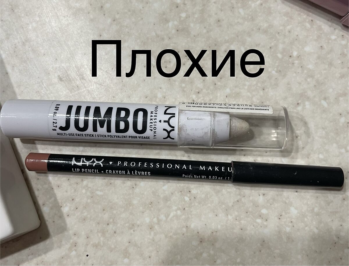 Карандаш для губ , чтоб хоть какой-то цвет был видет , нужно провести раз 15 . Мягкие карандаши для глаз скатываются даже на супер базе urban decay . Может и есть норм. продукты , но я в сторону NYX больше не смотрю.