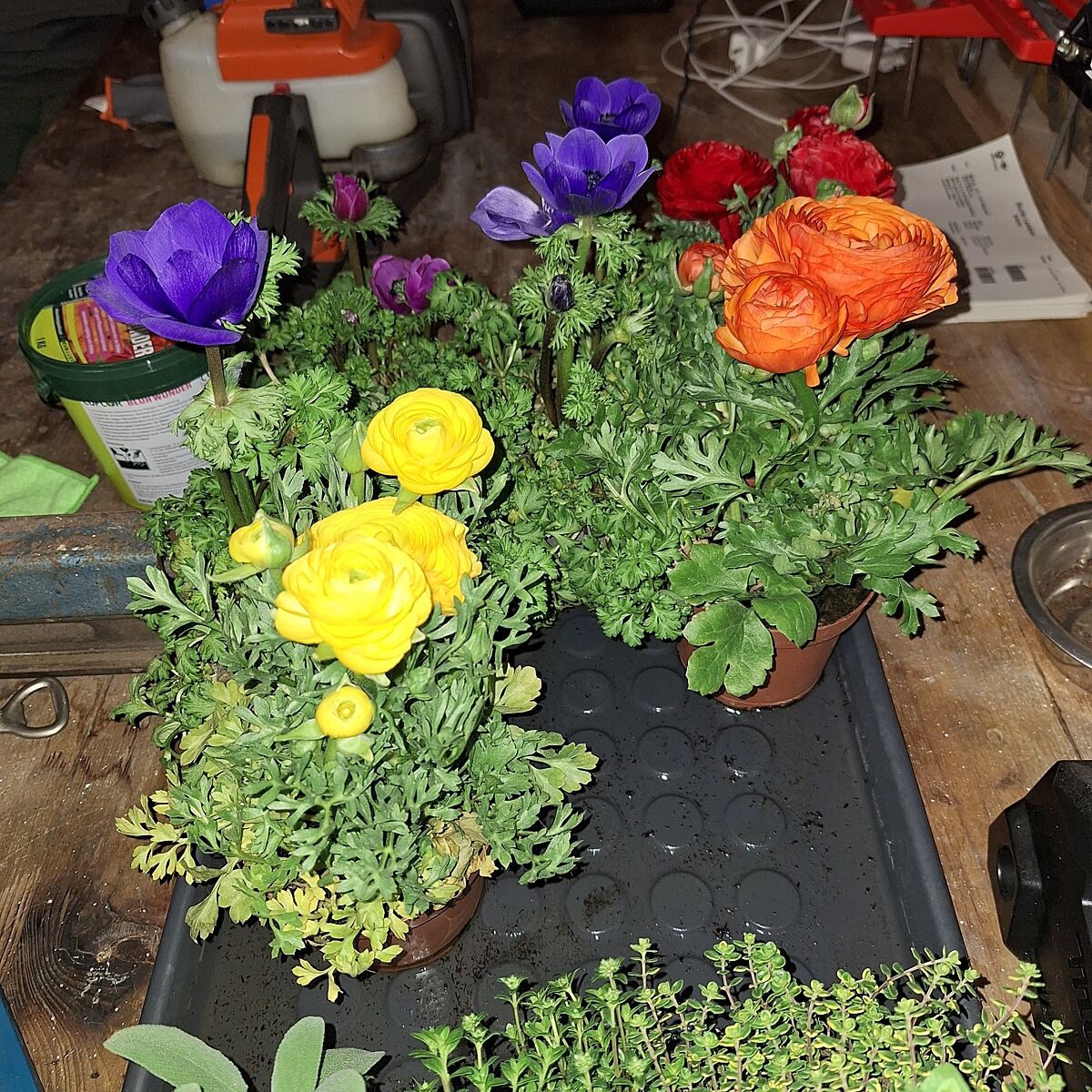 це ранункулюс - жовтець (лютік) декоративний. це клубневі багаторічні рослини, яким потрібні чіткі умови активності-спокою. почитайте про них краще у гуглі, бо писати багато.