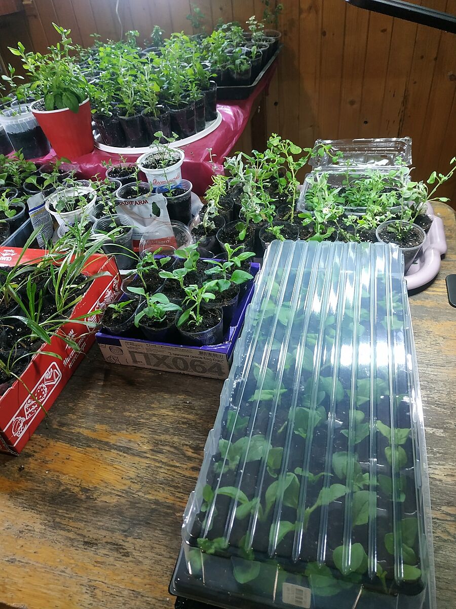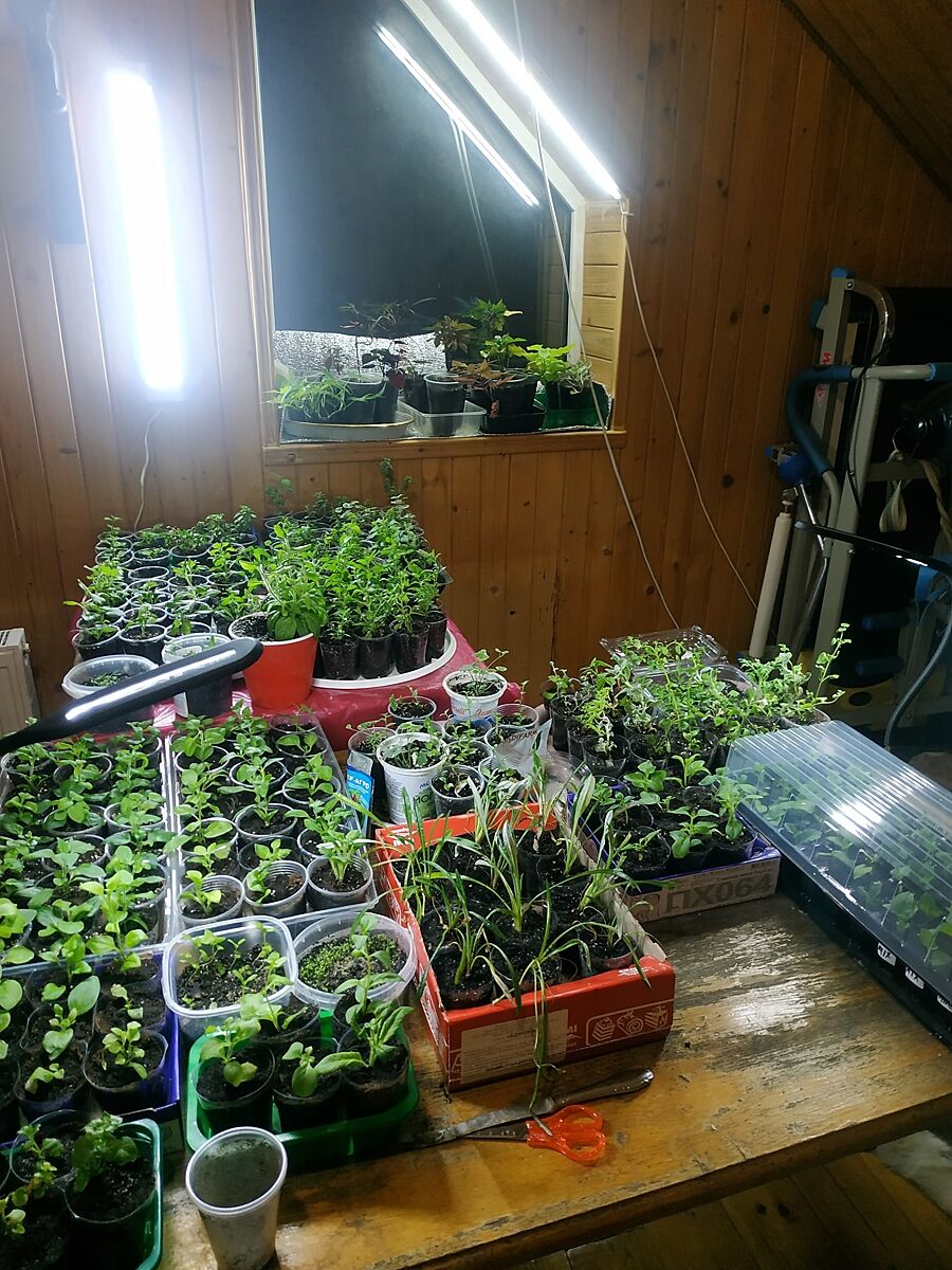 я посадила вперше вдома (в квартирі) огірки, помідори.