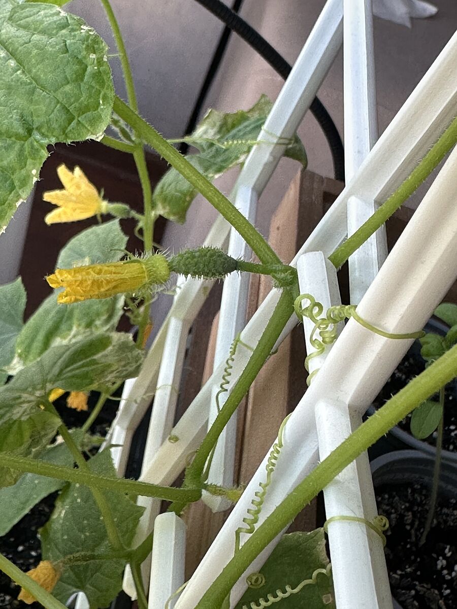 огірки поки шось не дуже пішли в ріст, а на помідорах навіть квіти не зʼявились поки(