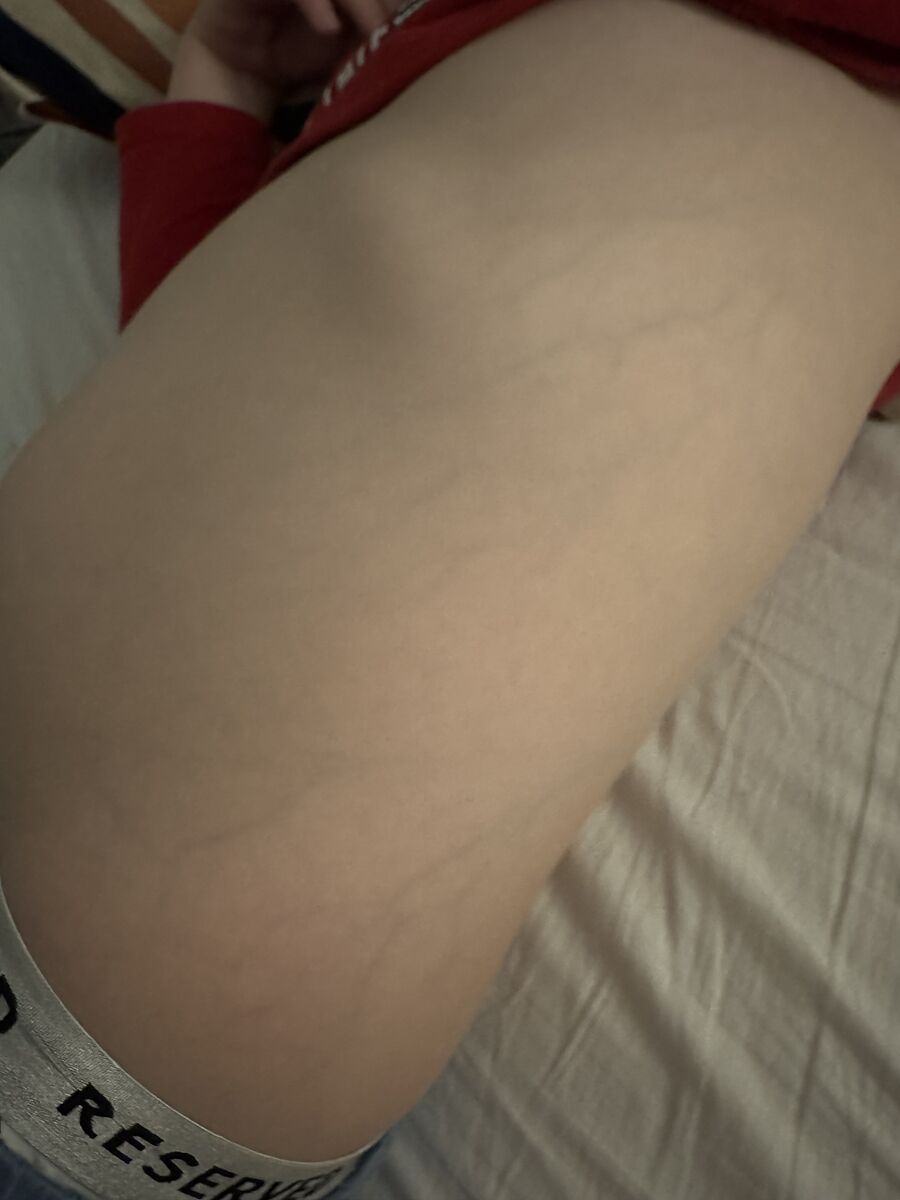 вены, сосуды. просто он потянулся и вены стали лучше видны. пусть ровно станет и не будет видно