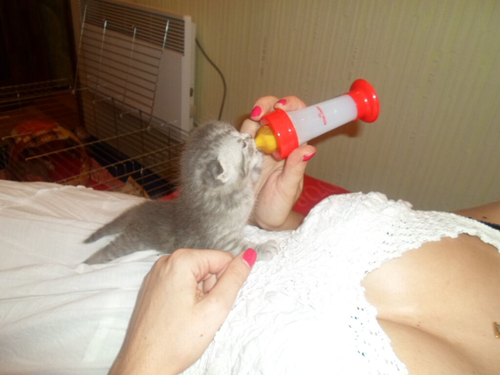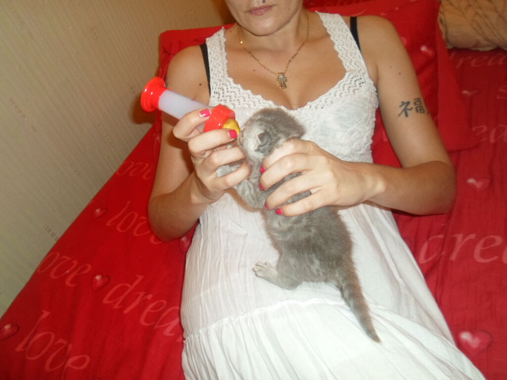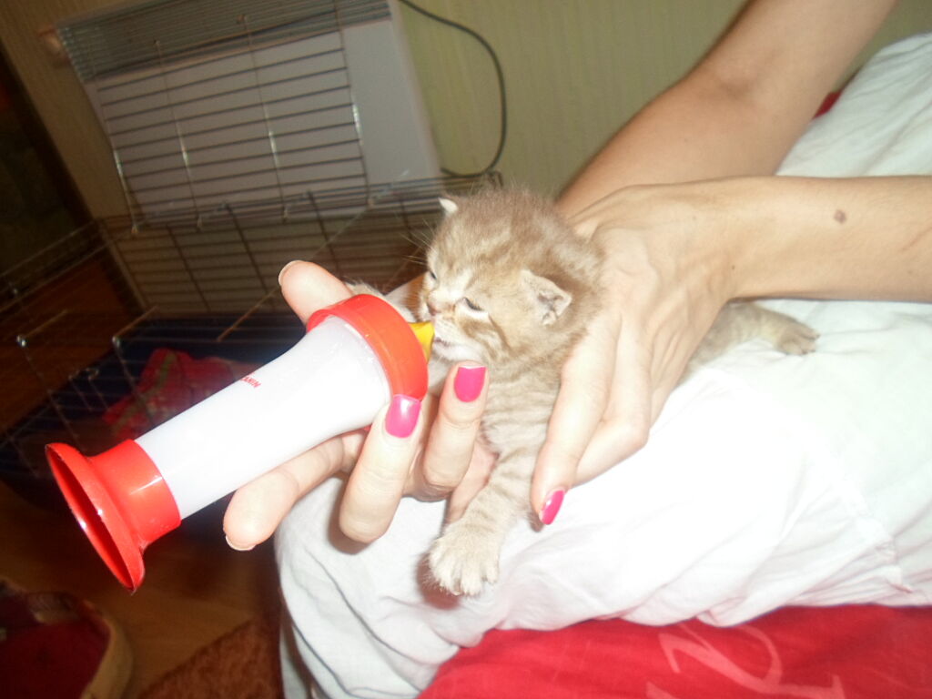 Коту ее лет так 15. Покупали в интернет магазине специальные смеси для котят и кормили с пипетки каждый час.