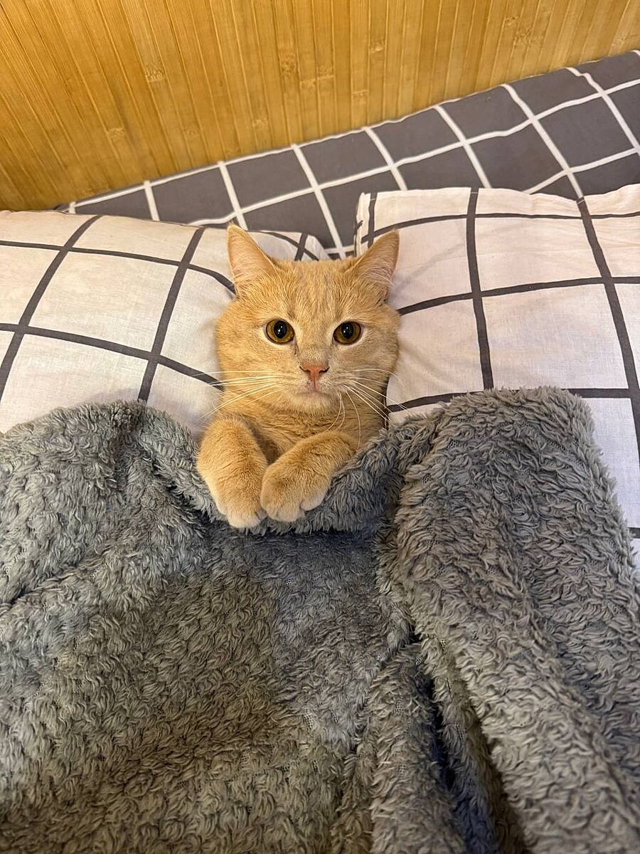 Кіт з нами спить. Чи то ми з ним))
