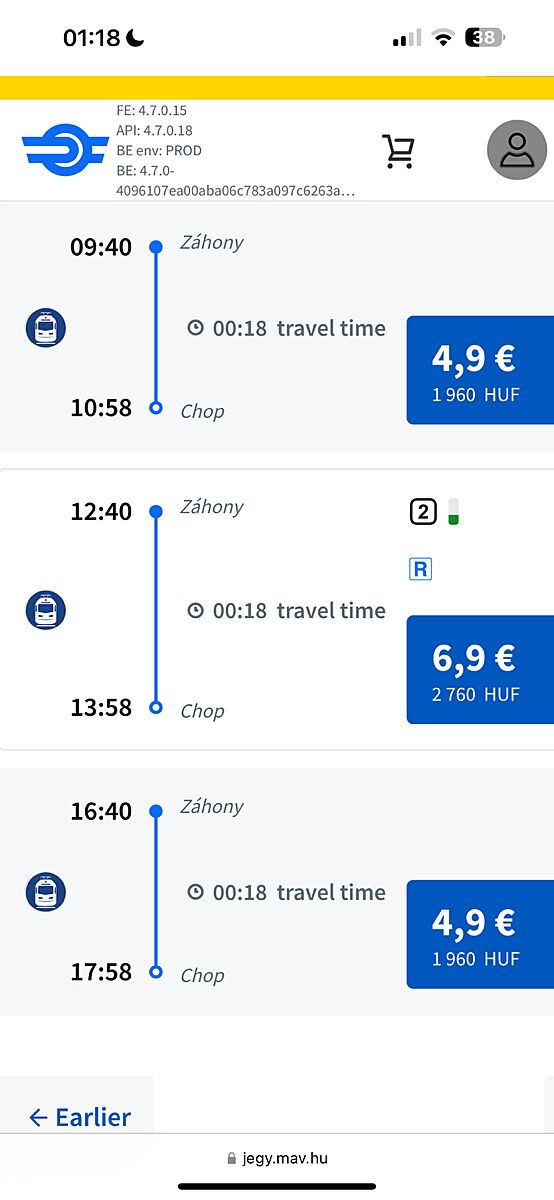 Мне в приложении ÖBB tickets показывает 3 евро Будапешт-Захонь,это так приблизительно?или я что то не то наклацала ?)