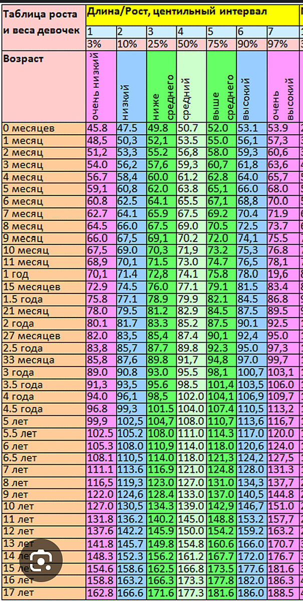 Что не то ? Диагноза нет какого то . Я шла в школу на голову выше всех,рост был 131 см ,дочка тоже . Рост был равномерный до начала месячных ,что у меня ,что у дочки, даже по вашей таблице рост очень высокий ,в 11 лет написано 157.7 см очень высокий, в 12 163 см ,ну у меня был 164 в 11.5 ,практически что и в таблице ,потом ещё росла по сантиметру в год где то три года