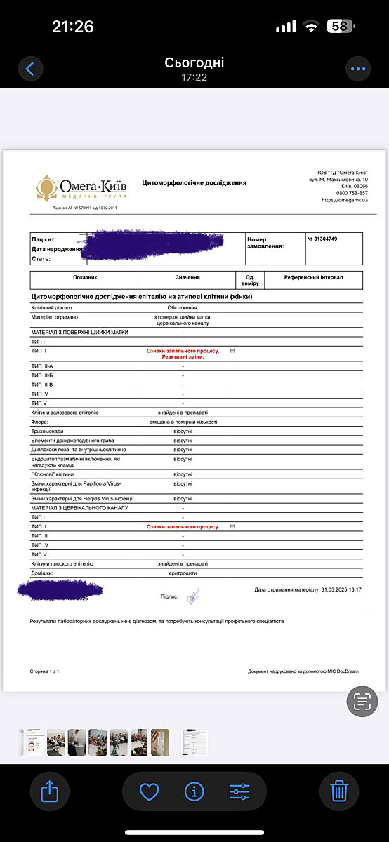 Прийшов результат: 2 тип, ознаки запалення, реактивні зміни. Боятися? Особливо насторожують « реактивні зміни»
