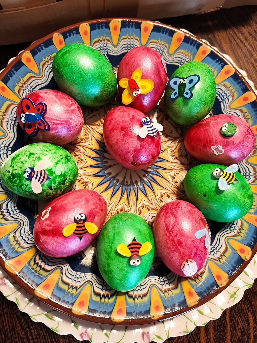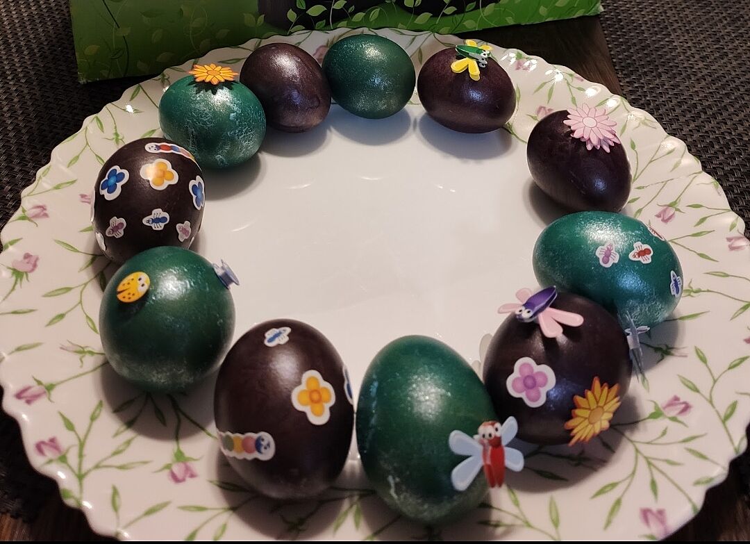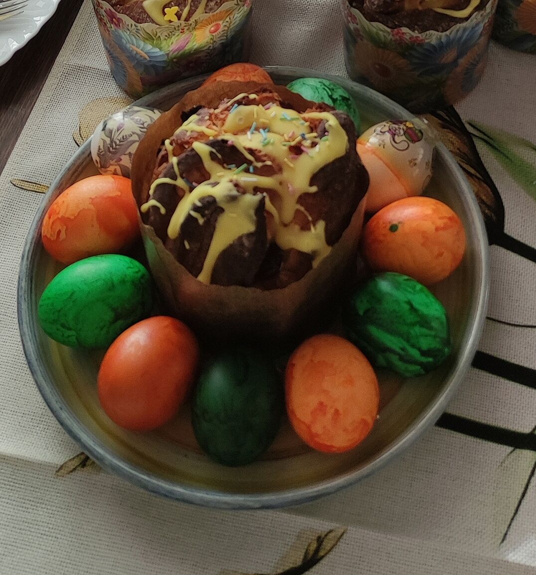 Донька любить робити яйця в техніці декупаж, а я не заморочуюсь - варю в вині, потім трохи кандуріна, і краса)