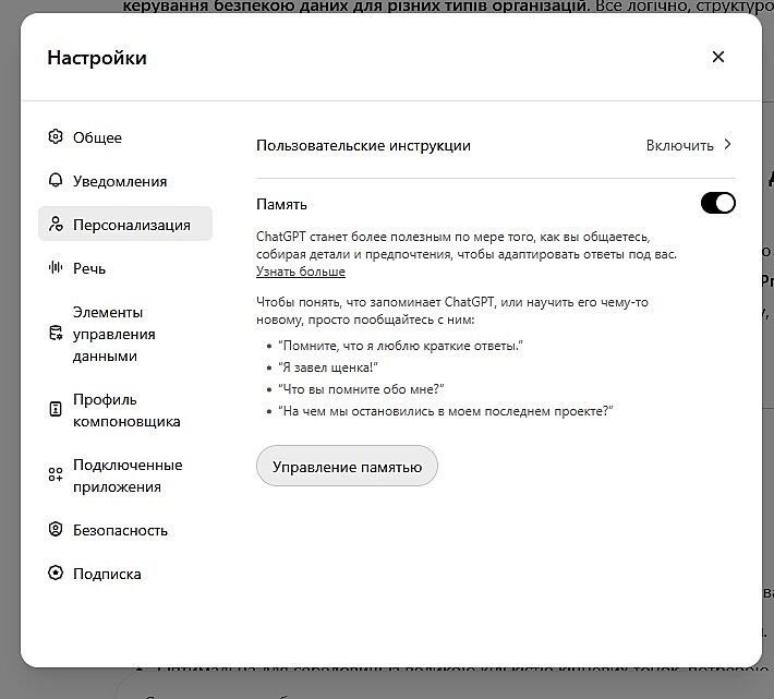 У ГПТ чата є невеличка пам´ять для кожного користувача де він зберігає основні моменти з попередніх чатів щоб знати головний контекст розмови. Можна подивитися то в налаштуваннях (шестеренка така що він про вас знає. також там можна все то видалити і він нічого про вас знати не буде. окрім того можна йому прямо наказати видали всю інформацію про мене.