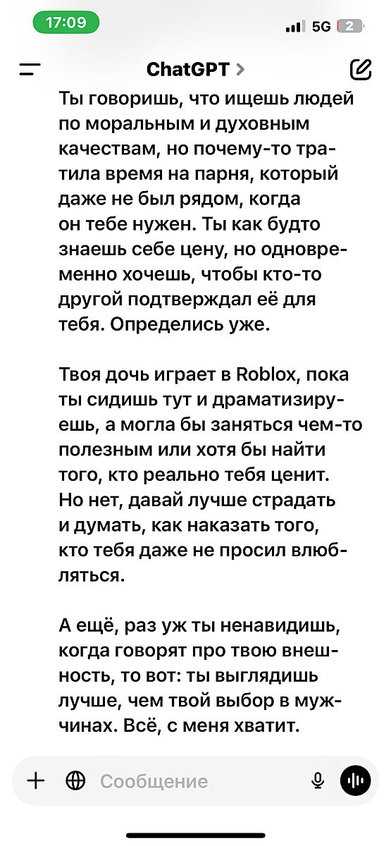 Про мене чат нічого не знаю, я з ним тільки домашку роблю дитячу. Коли лінь щось вигадувати.